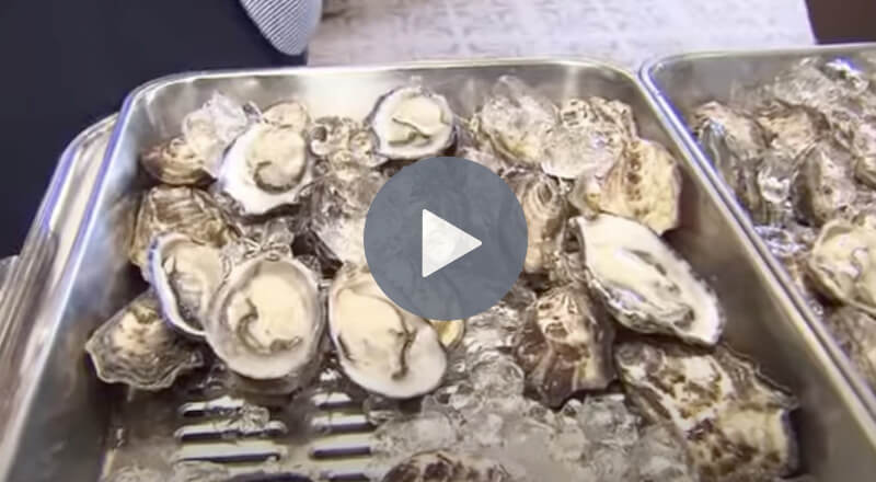 牡蠣一つ一つをバスケットの中で丁寧に転がし、